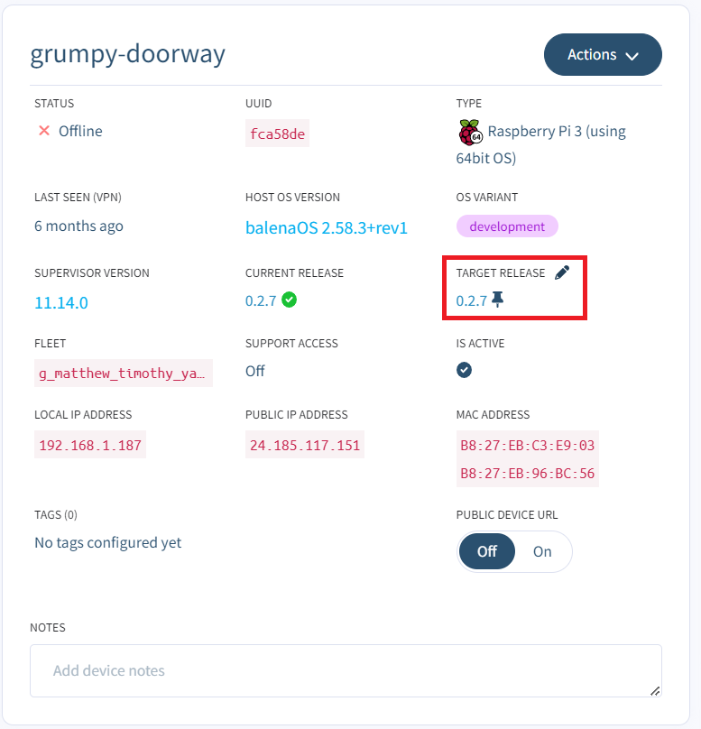 Target releaseproperty in the Device summary page, you will see a pencil icon appear. This can be used to pin the release as well.